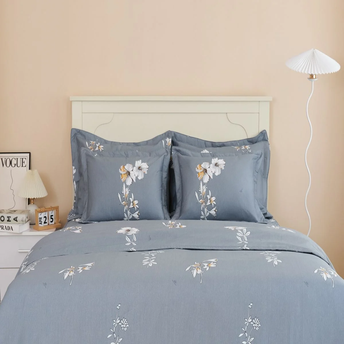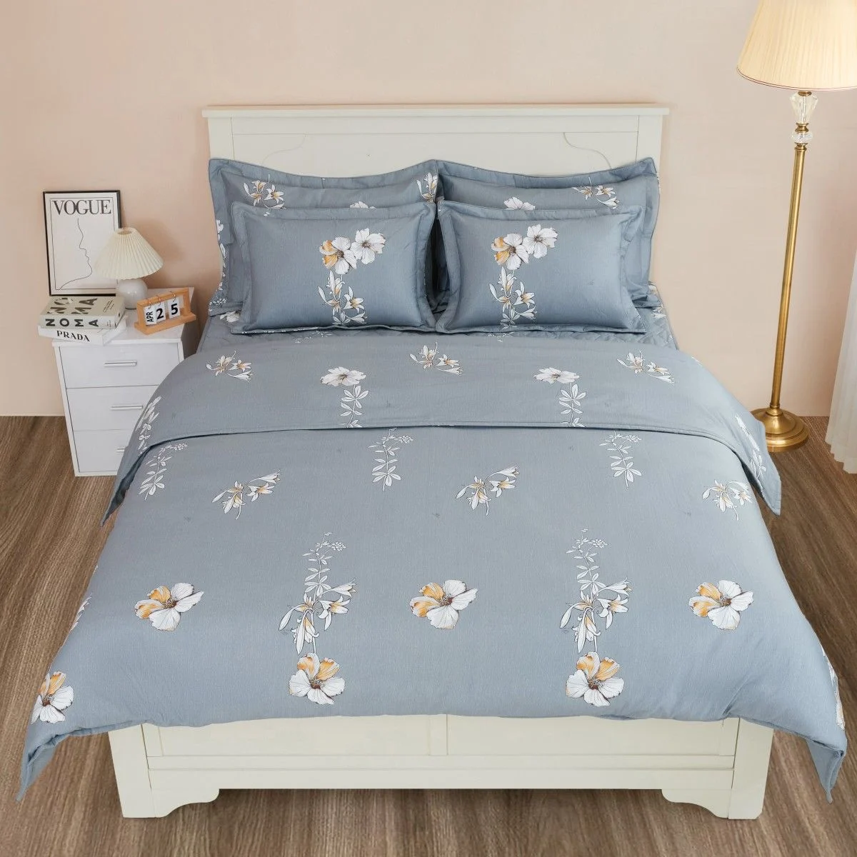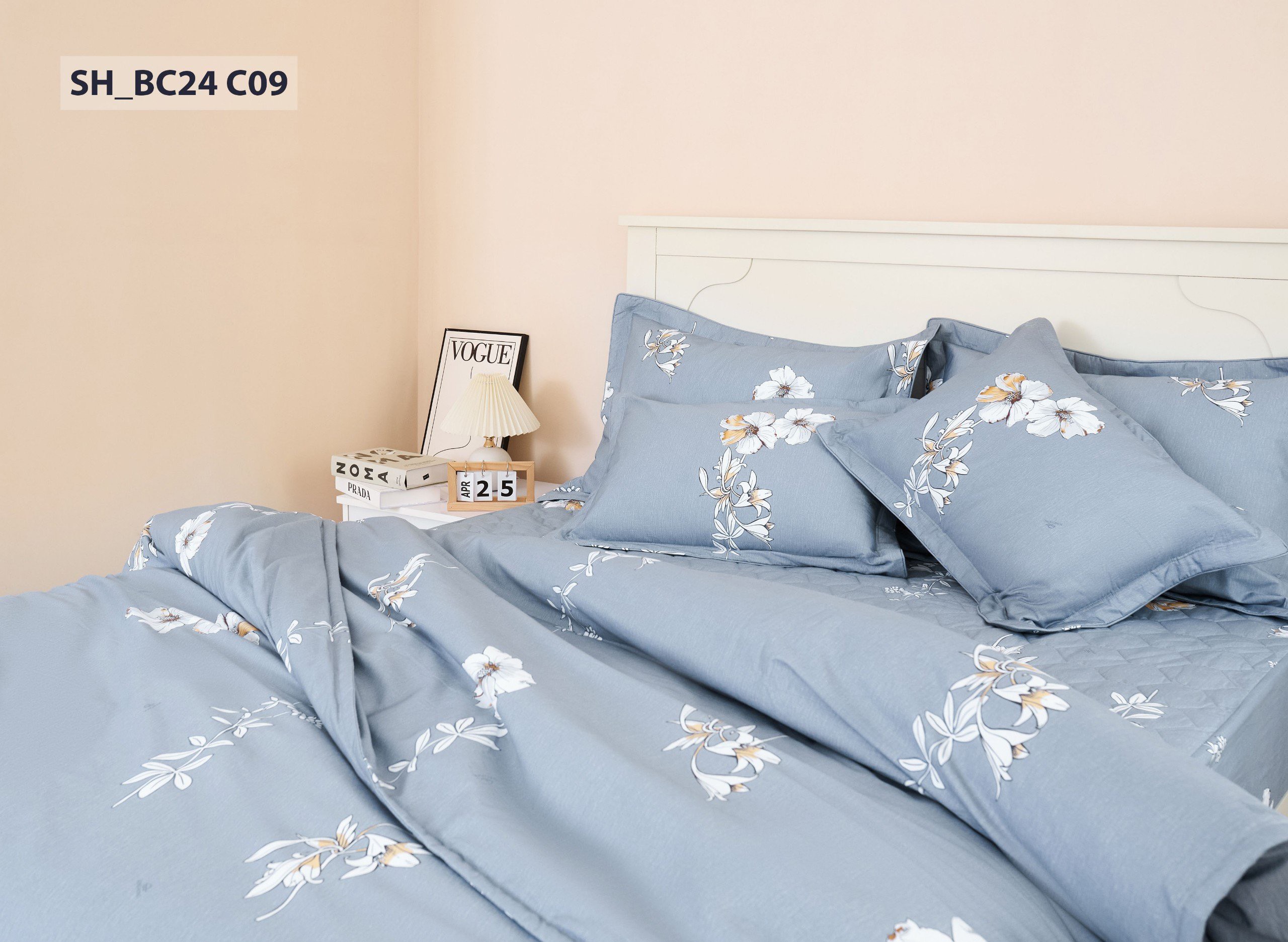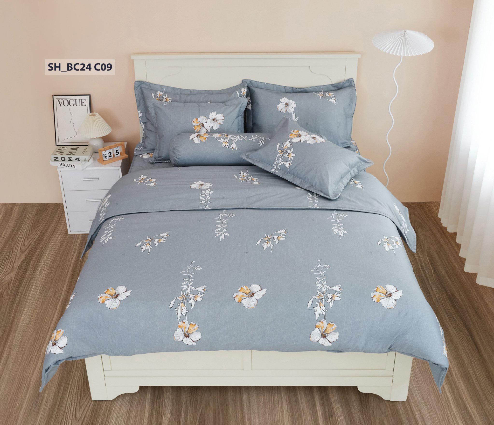 - Bộ sản phẩm được làm từ 100% cotton thiên nhiên, sợi vải mềm, mịn, thoáng mát thấm mồ hôi tốt sẽ mang đến cho gia đình những giấc ngủ ngon.Đặc biệt sợi vải có khả năng kháng khuẩn cao, ngăn ngừa đáng kể sự thâm nhập của vi khuẩn, tránh chăn ga bị nấm mốc ngay cả trong thời tiết oi nóng.