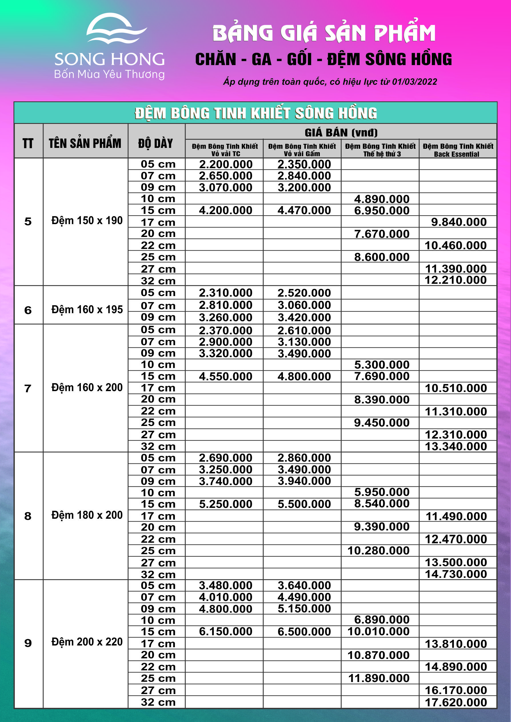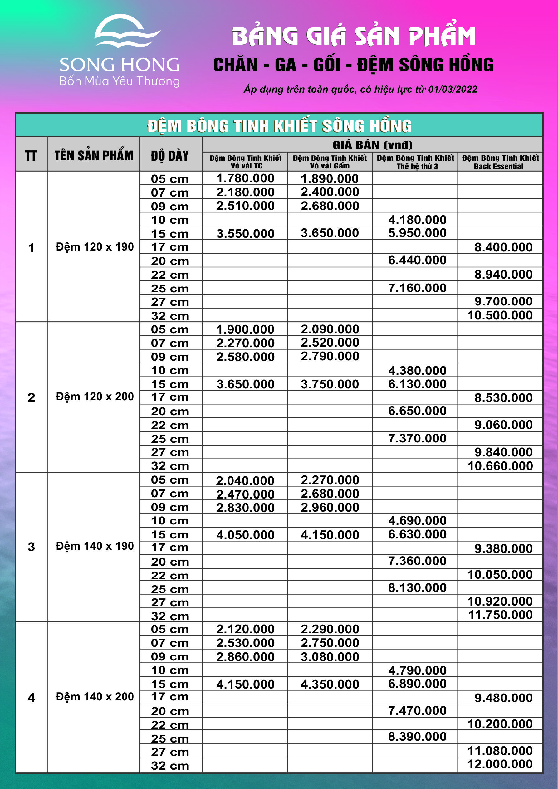 Chăn ga gối Sông Hồng - Đơn vị cung cấp đệm Back Essential uy tín trên thị trường.