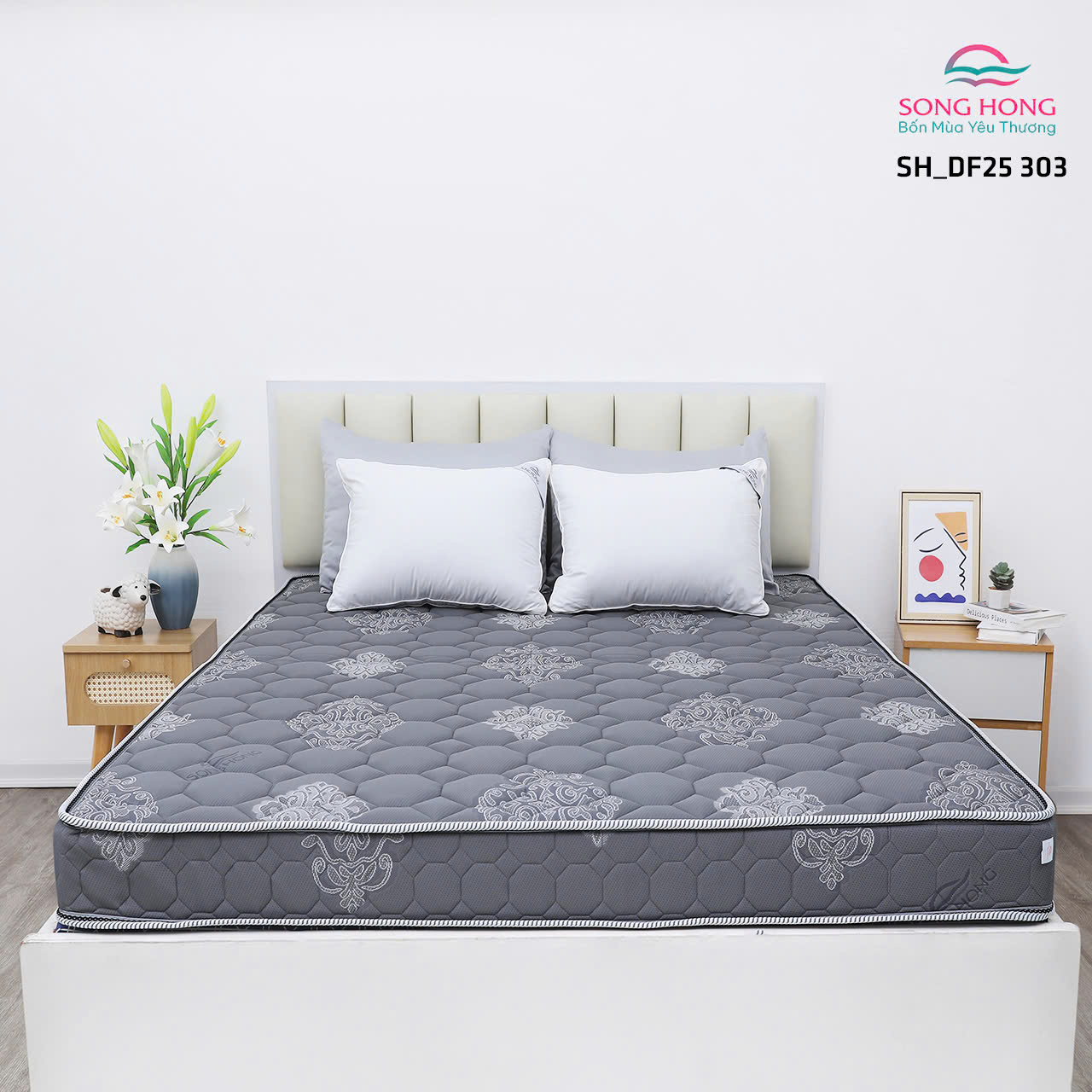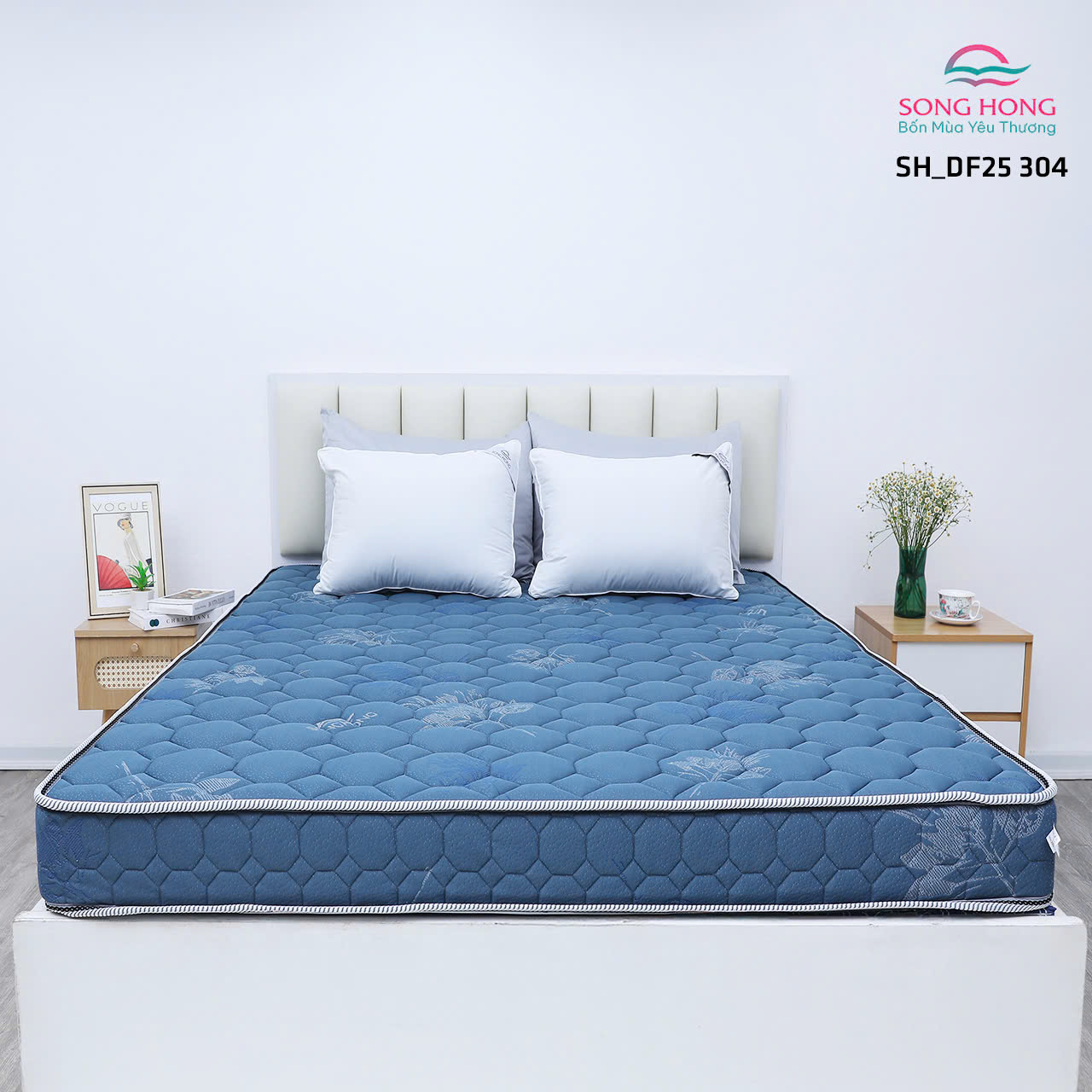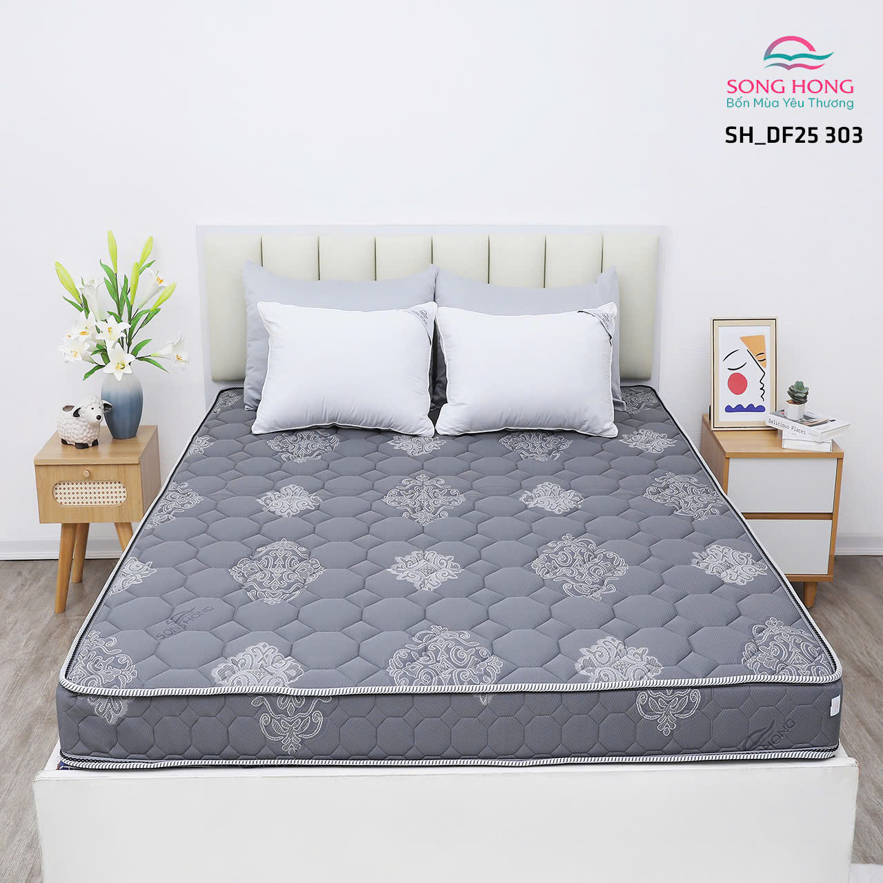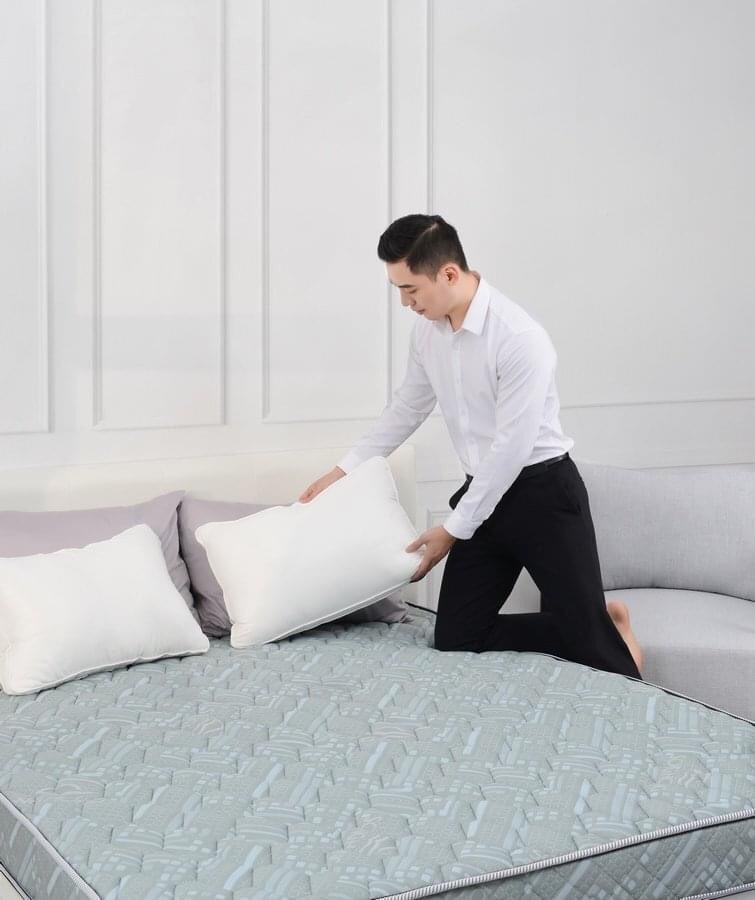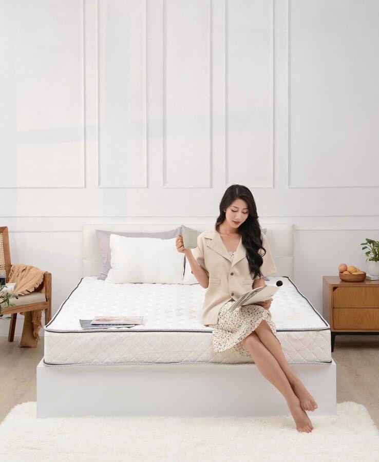 - Lớp foam giữa được bổ sung có độ dày 5-7cm tăng độ êm ái và đàn hồi, chống võng lưng, đau mỏi.