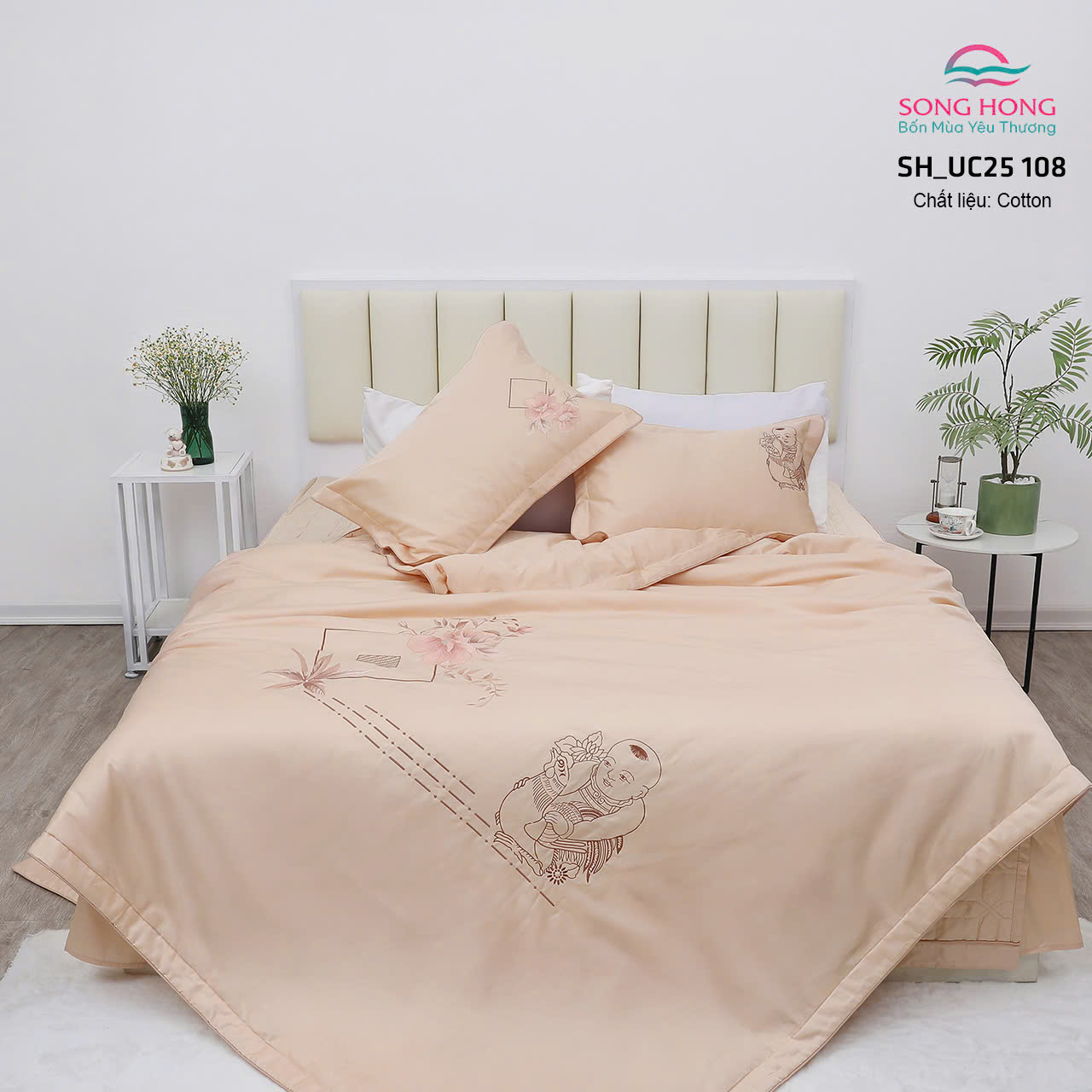 • Bộ sp Sông Hồng làm từ liệu vải nhập khẩu 100% Cotton, mềm mại,thoáng mát và an toàn cho mọi làn da.
