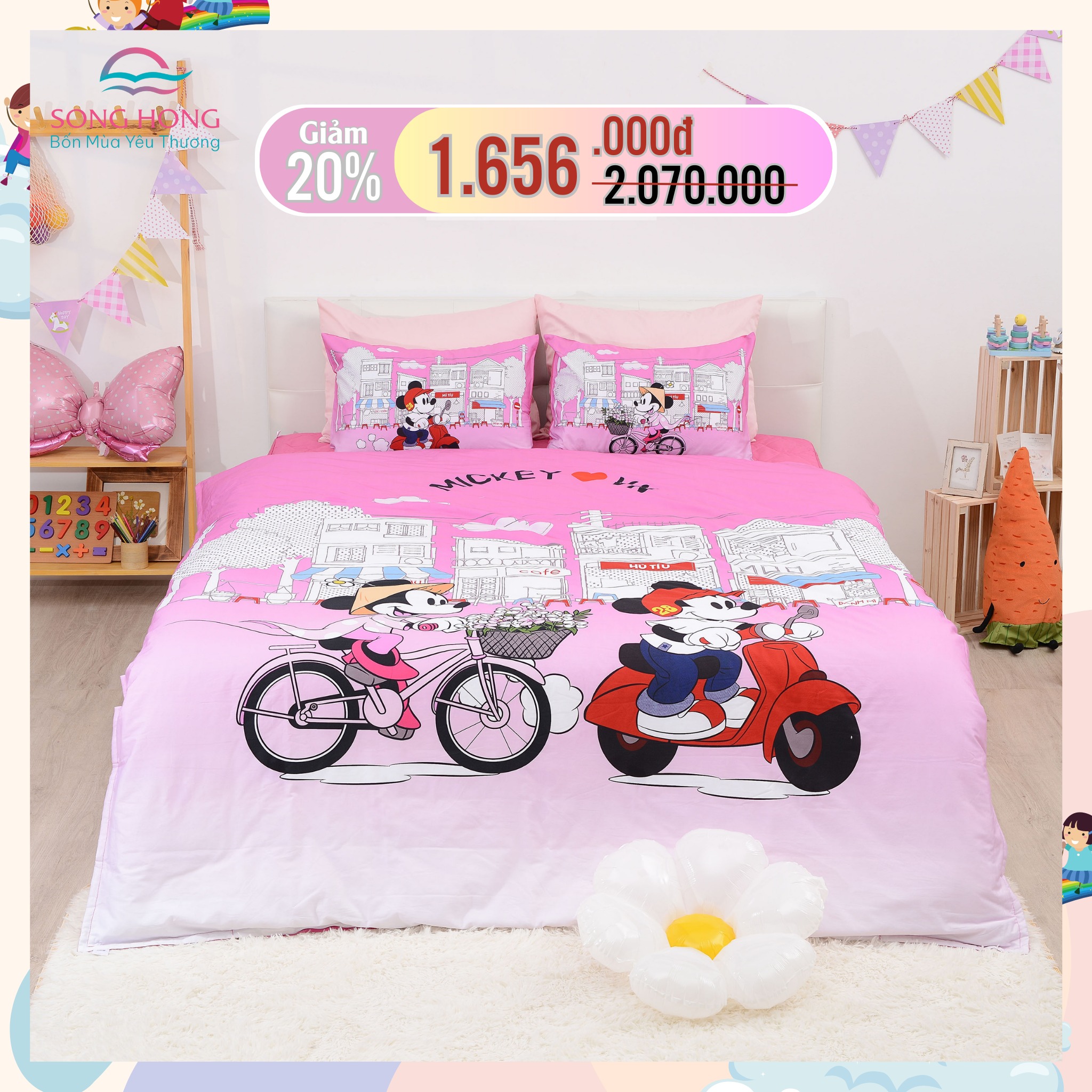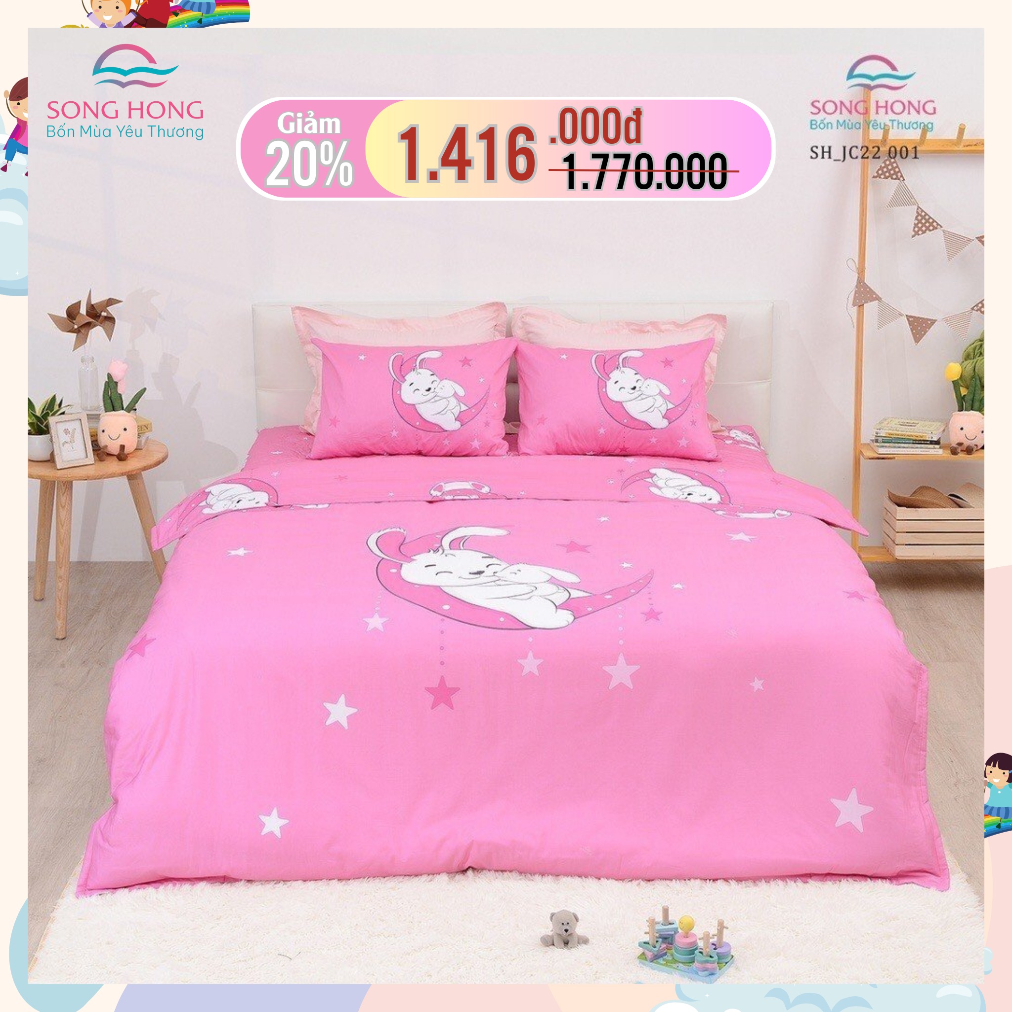 Đặc biệt, chỉ trong dịp Tết Trung Thu 1/6 này, Sông Hồng chính hãng mang đến cho bạn ưu đãi đặc biệt: Giảm ngay 20% giá trị bộ chăn ga gối trẻ em.